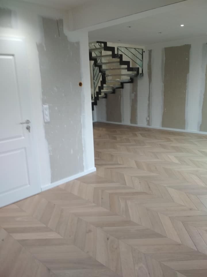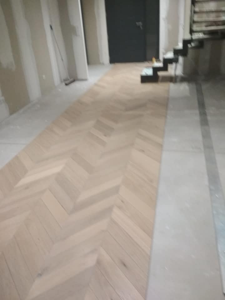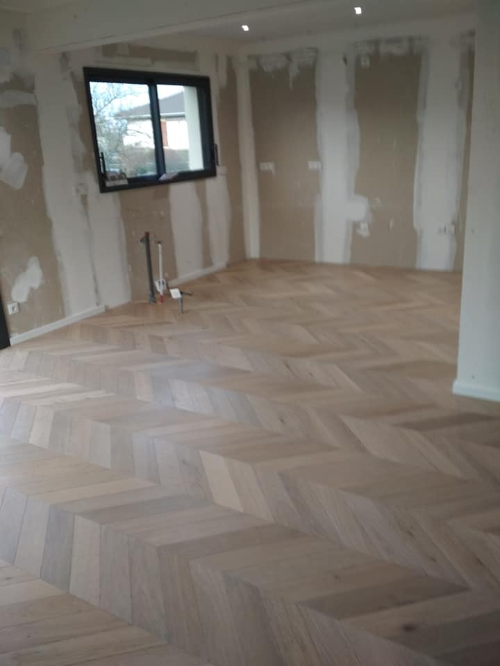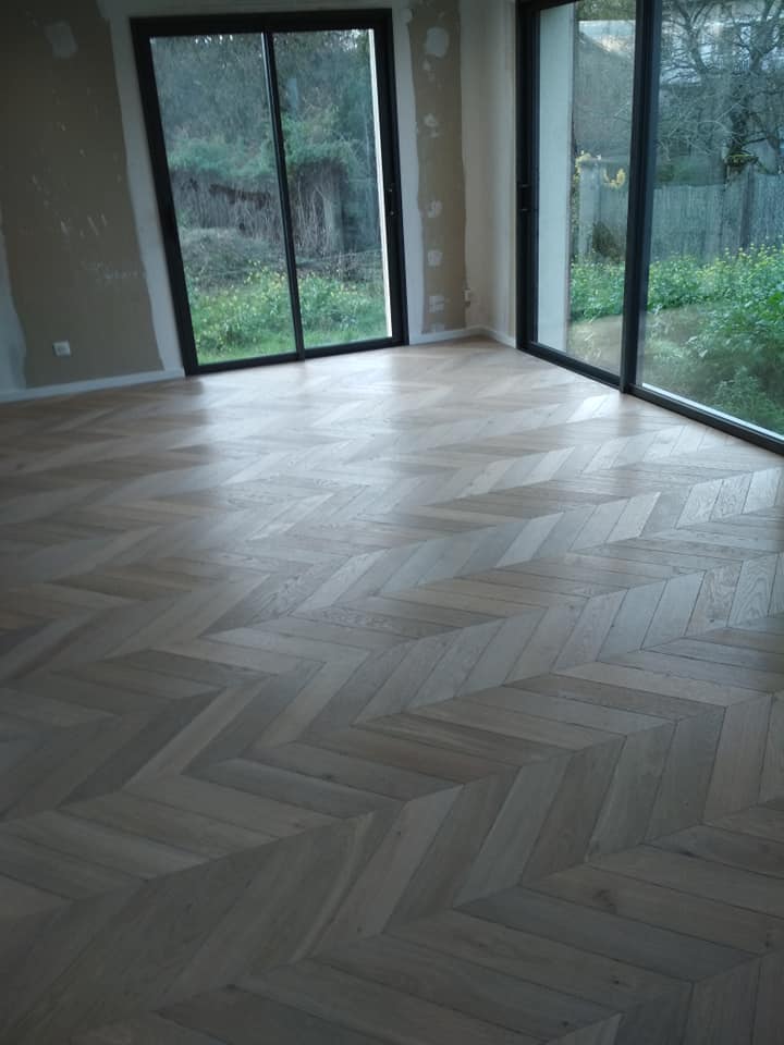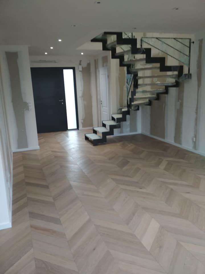 LUXEMBOURG Pose point de hongrie chêne fini en usine 14mm