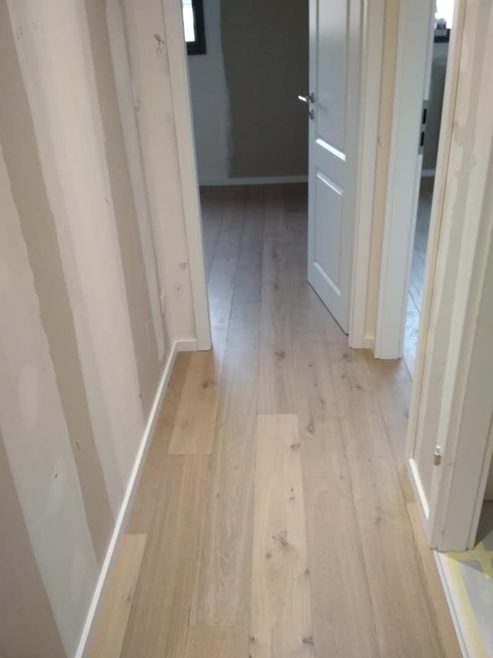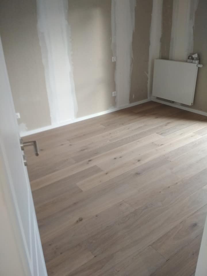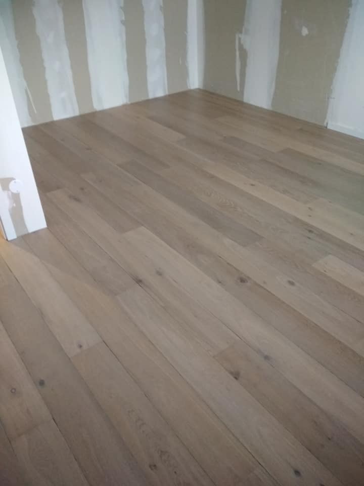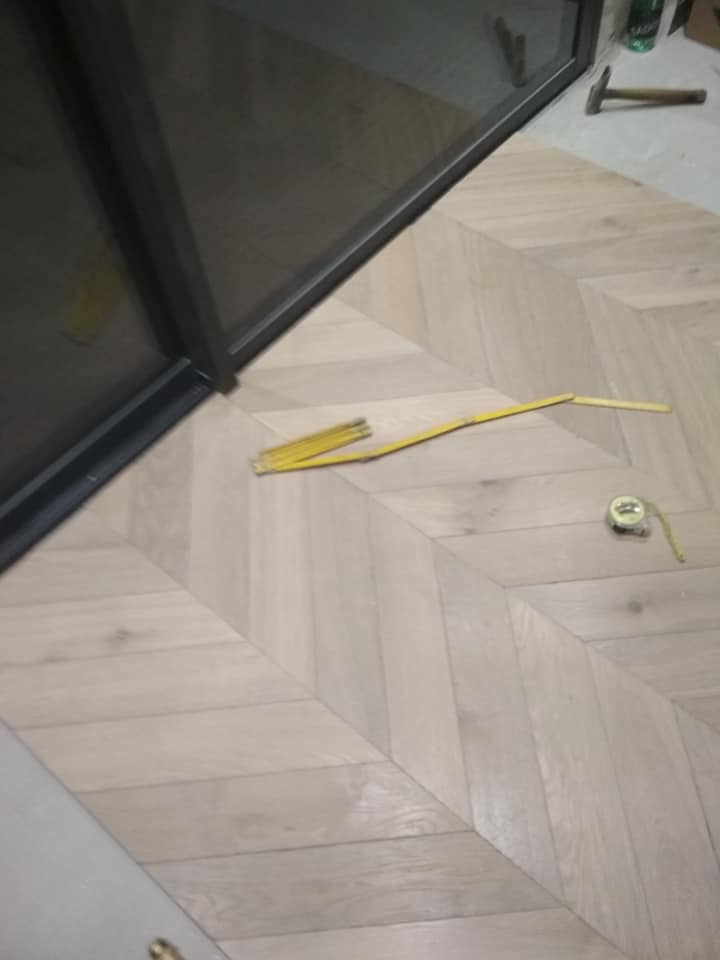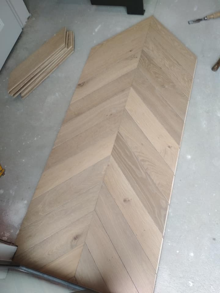 LUXEMBOURG Pose point de hongrie chêne fini en usine 14mm
